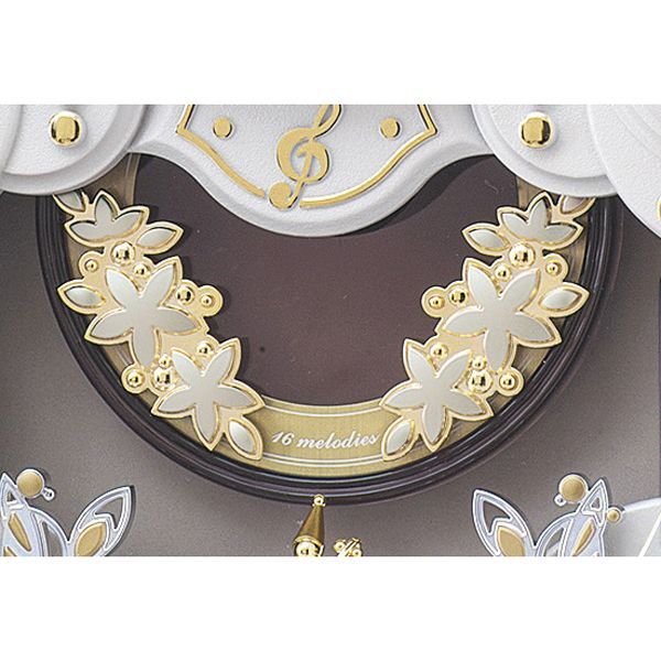 お部屋に調和するアミューズ掛け時計。16曲のメロディが正時ごとに切り替わりるエレガントな時計です。 製品番号 AM260A枠材 プラスチック枠(茶マーブル模様光沢仕上げ) 前面:ガラス サイズ・重さ 480×284×84mm 1.9kg電池 単2(アルカリ)×2 単3(アルカリ)×1 (電池寿命約1年間) 機能・電波修正機能(40kHz/60kHz自動選局・受信OFF機能つき)・正時16曲メロディ・光センサーによる自動鳴止め・音量調節・報時モニター・飾り振り子・石膏ボード用掛金具つき・スイープセコンド・おやすみ秒針(光センサーによる自動秒針停止機能)
